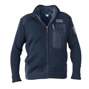 Dienstrock, Kammgarn-Trikot, Oberstoff: 45 % Schurwolle-Trikotine/55 % Polyester, Innenfutter: Taftfutter schwarz, Farbe: dunkelblau, einreihig, mit 4 Knöpfen, mit zwei aufgesetzten Brusttaschen und zwei eingeschnittenen Seitentaschen mit je einer Patte und Knopf, leicht tailliert mit Rückenschlitz, aus dunkelblauem Tuch auf Einlage gearbeitet und frontfixiert. Fabr. Der Klassiker.