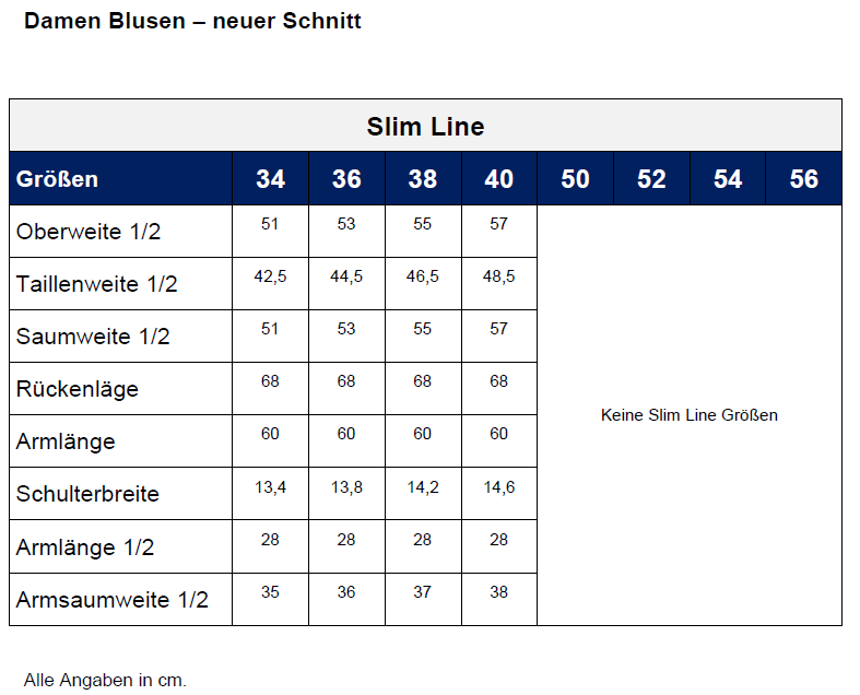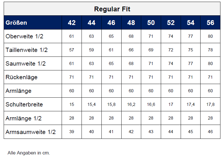 | Größe | 34, 36, 38, 40, 42, 44, 46, 48, 50, 52, 54 |