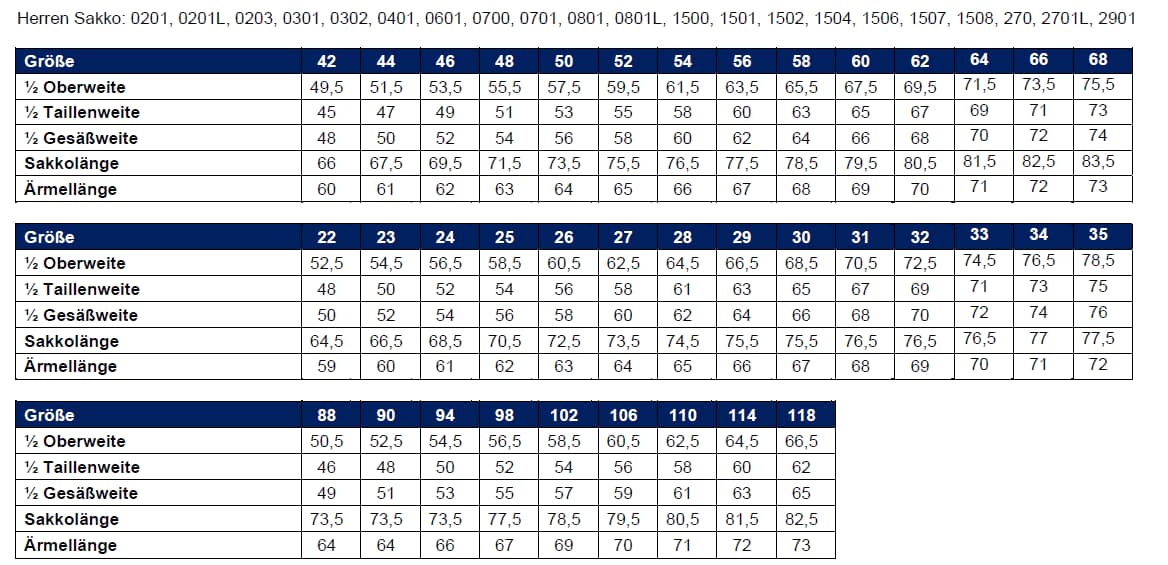 Größen erhältlich: 24-35, 40-70, 88-118